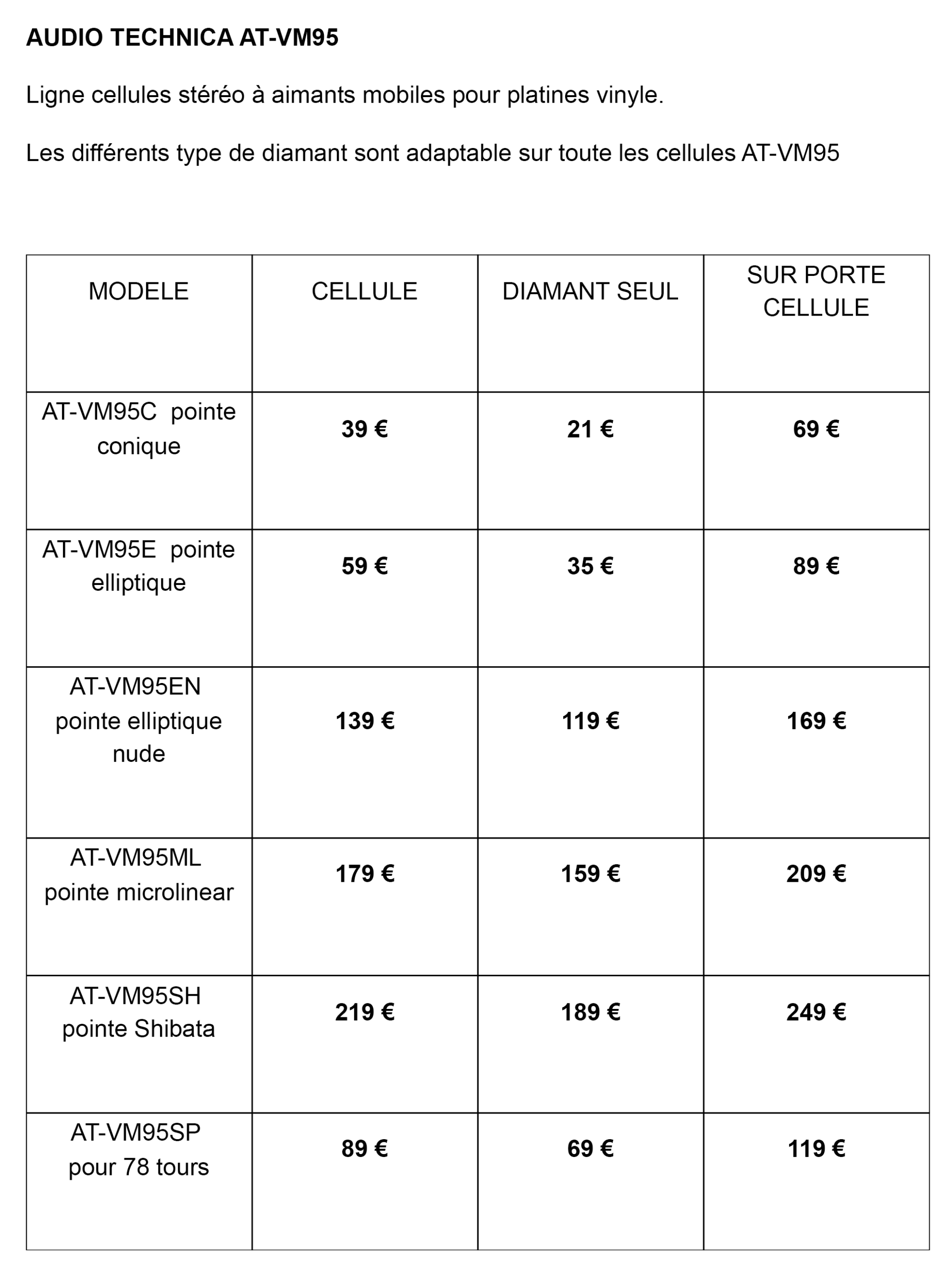 Tableau des prix —–>